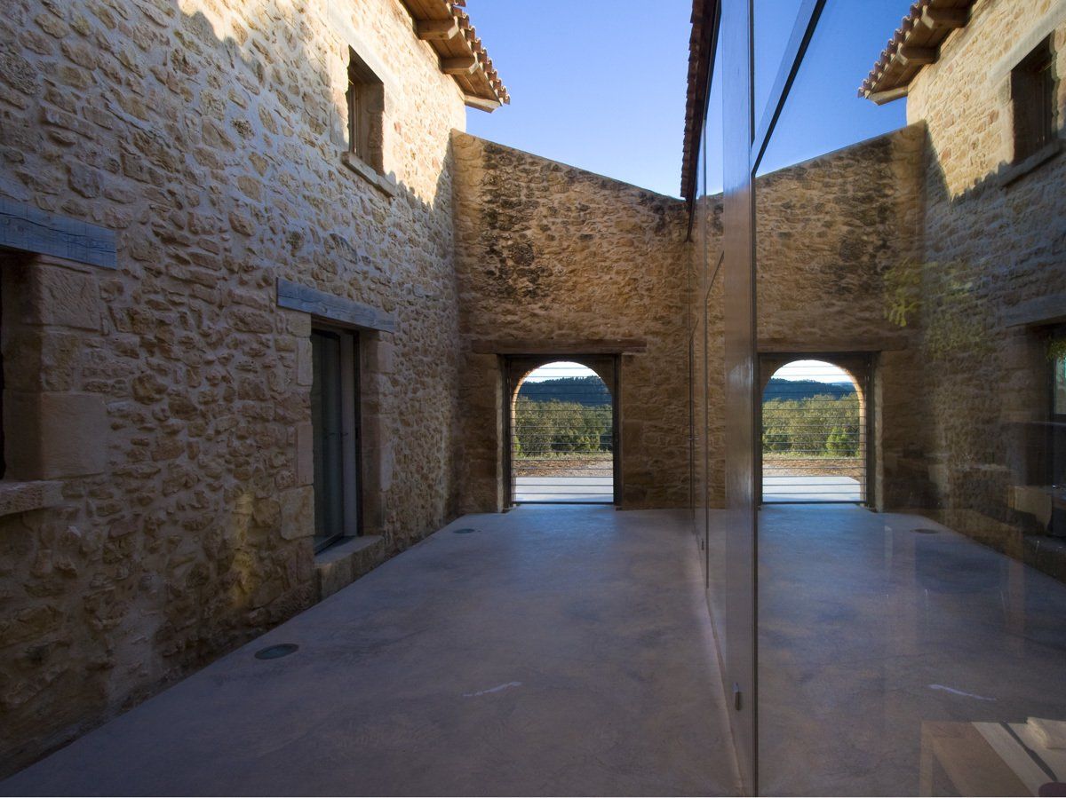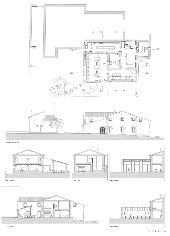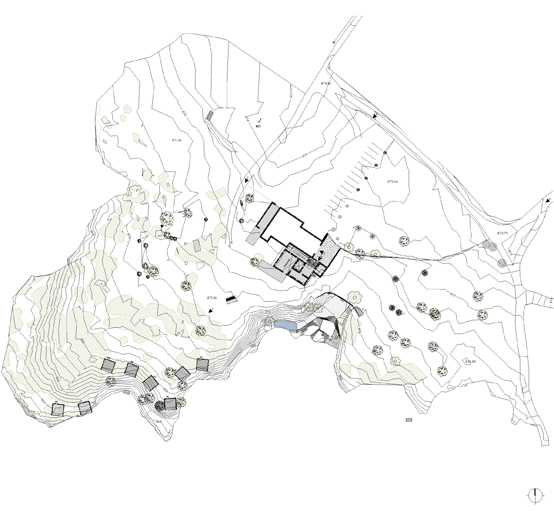 Las primeras ideas son muy claras, reformar el casalicio para ubicar los elementos comunes del hotel y construir una ampliación para ubicar las habitaciones. Se decide que la nueva construcción no esté adosada a la edificación existente, para preservar el elevado interés del conjunto, sino que se coloque respetando la naturaleza de forma disgregada y dispersa, de esta manera conseguimos integrarla en el paisaje y obtener el mínimo impacto visual.
