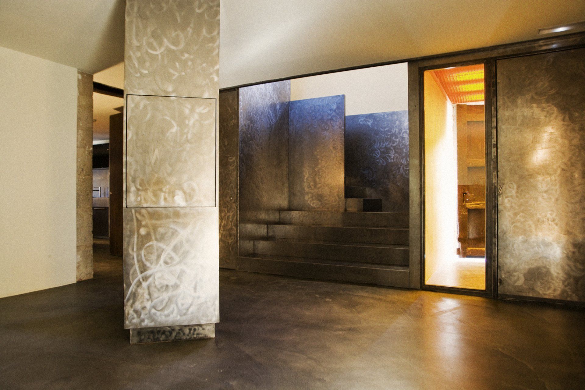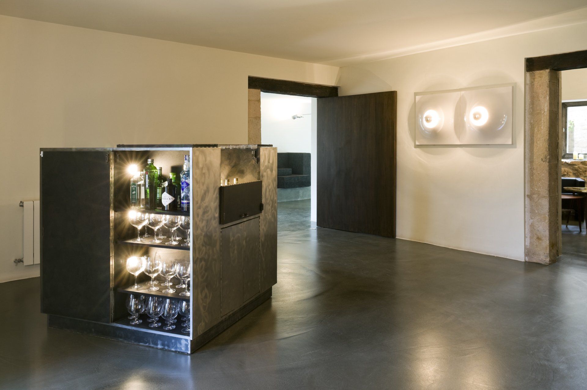 Los espacios son polivalentes pueden ser sala de descanso o sala de reuniones, cocina o zona desayuno, recepción o bar, …., al ser espacios relativamente pequeños se intenta que todo sea accesible y todo esté muy comunicado para tener una sensación global.