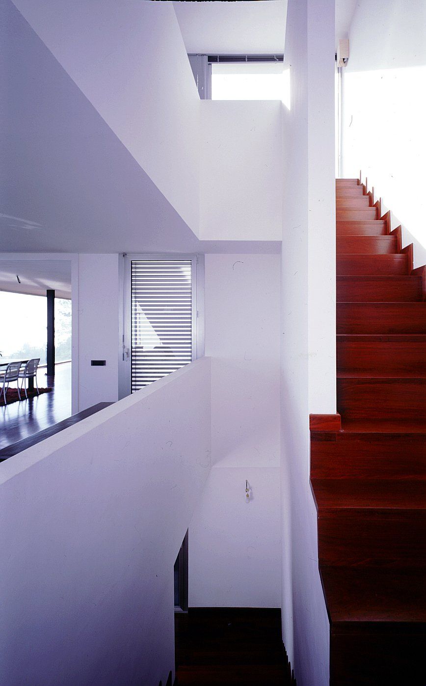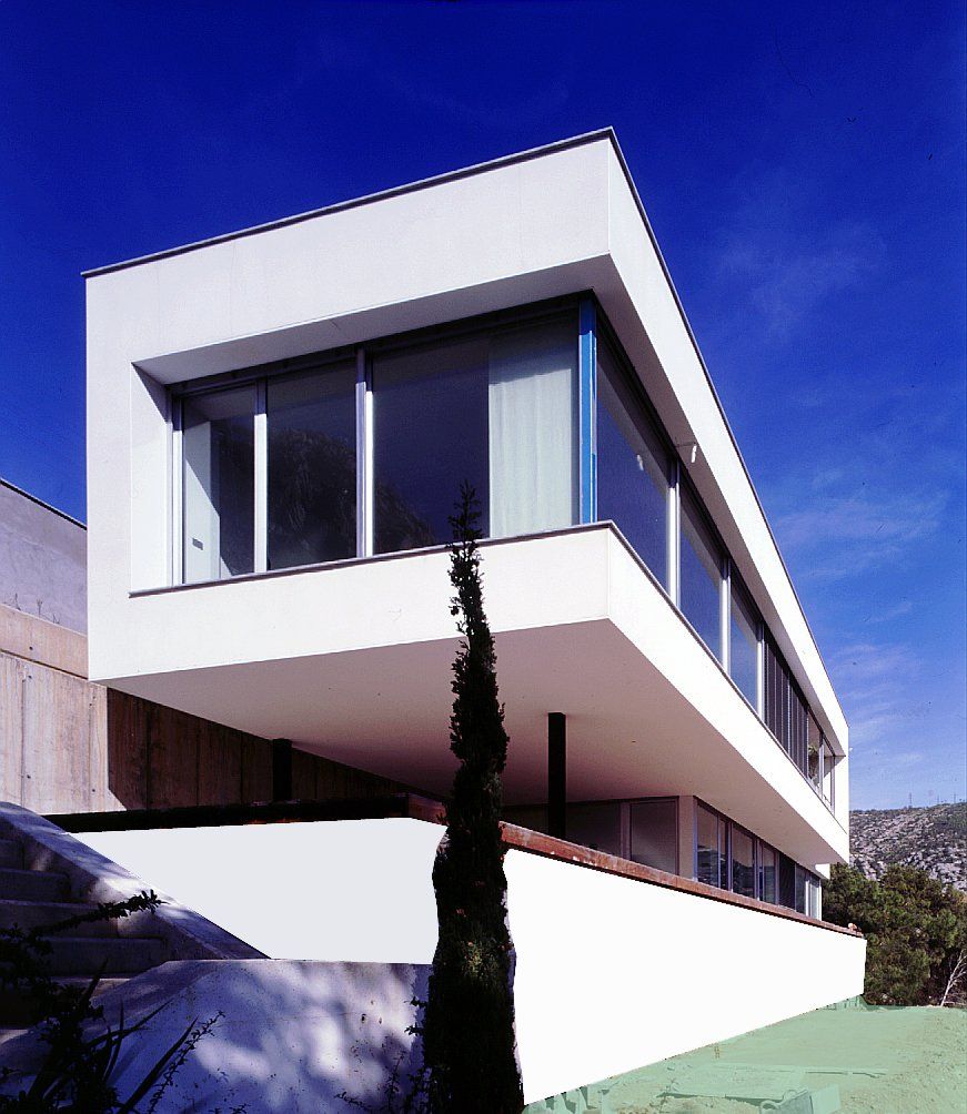 La accidentada topografía y el gran desnivel de la carretera a la parcela fueron determinantes para la definición y colocación la vivienda.