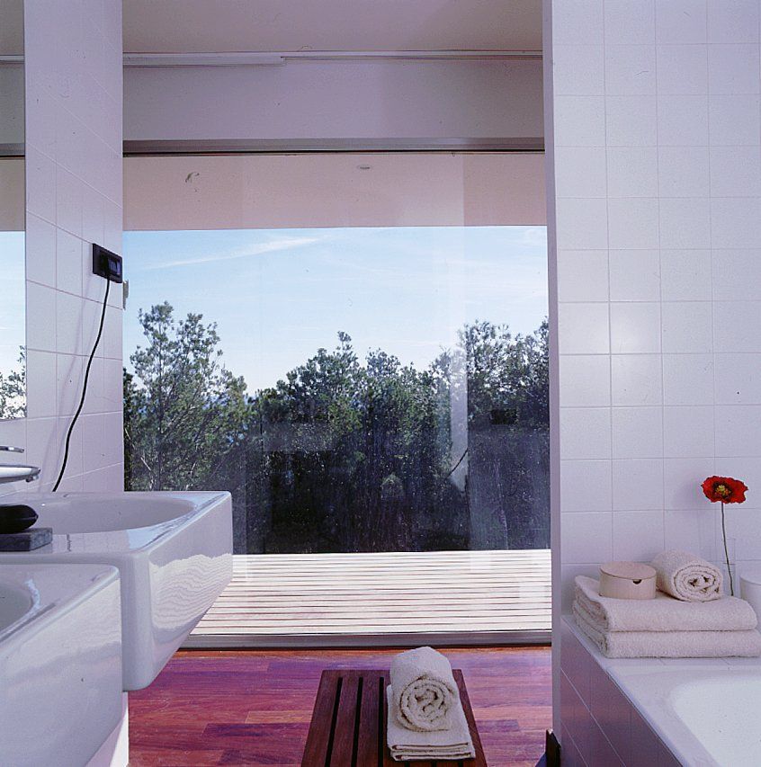 Desde la carretera la vivienda aparece como un cuerpo opaco, que contrasta con las grandes oberturas de la fachada sur.