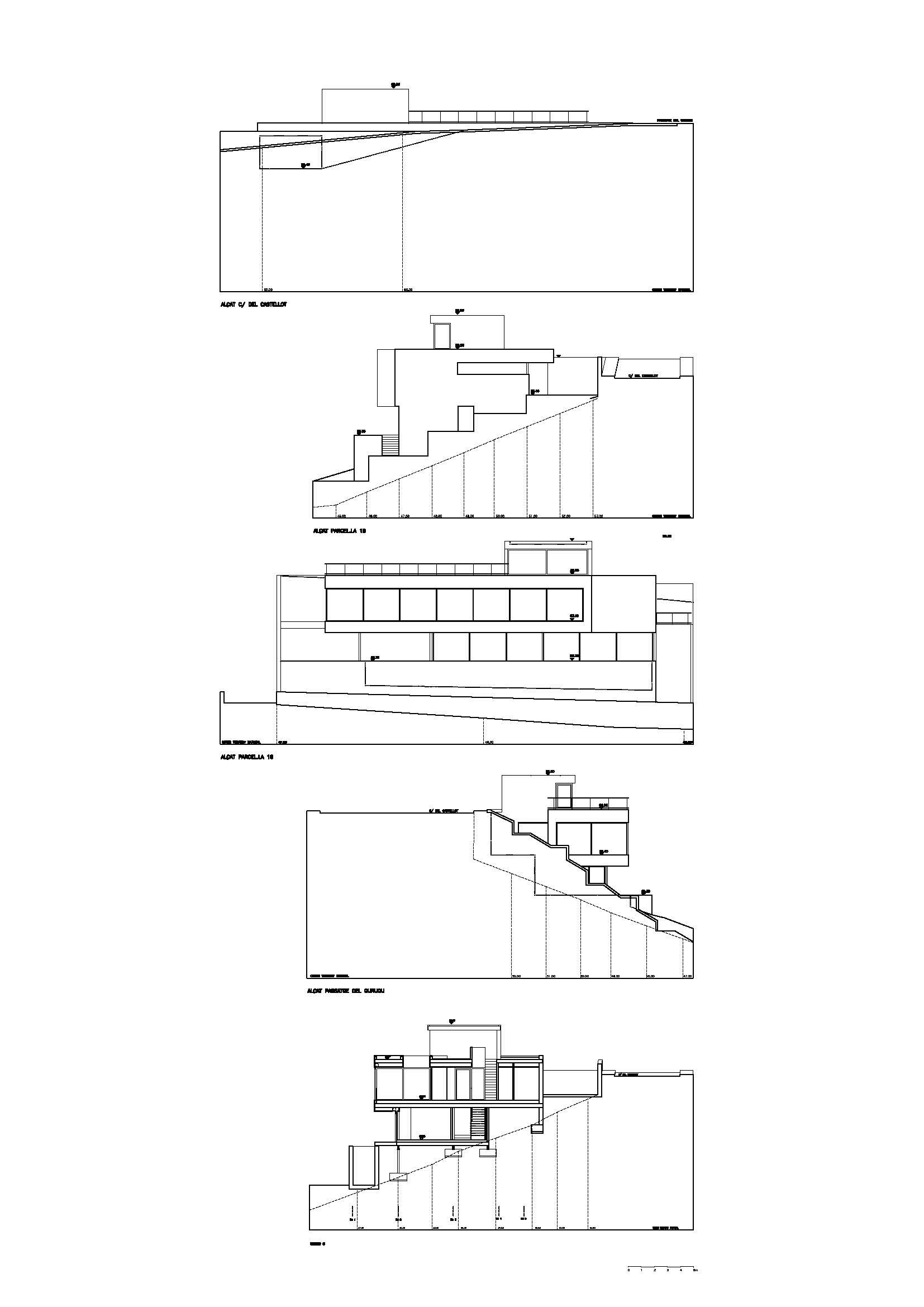 Este volumen, de superficie superior a la planta baja, se apoya y se vuelca, sobre el volumen inferior, creando un gran porche y la zona ajardinada, con una piscina de dimensiones 22x2 colocada paralela a la pendiente.